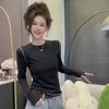 2025 Autumn/Winter Women's Stylish Round Neck Long Sleeve Plus Velvet T-shirt, Inner/Outer Base Layer