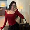 2026 Spring/Autumn Pure Desire One-Shoulder Strappy Long Sleeve Top - Casual & Versatile