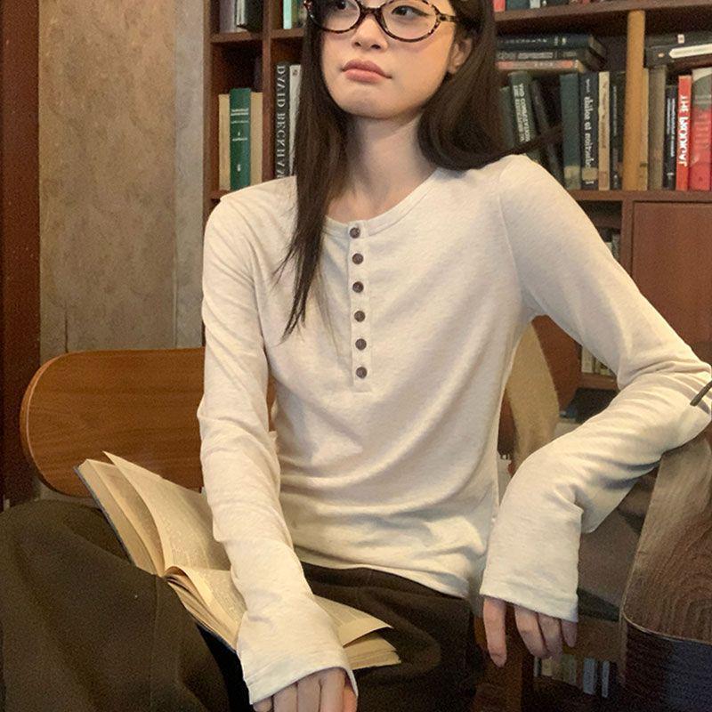 Autumn/Winter Pure Desire Spicy Girl Cotton Long-Sleeve Slimming T-shirt - Women's Versatile Flattering Top