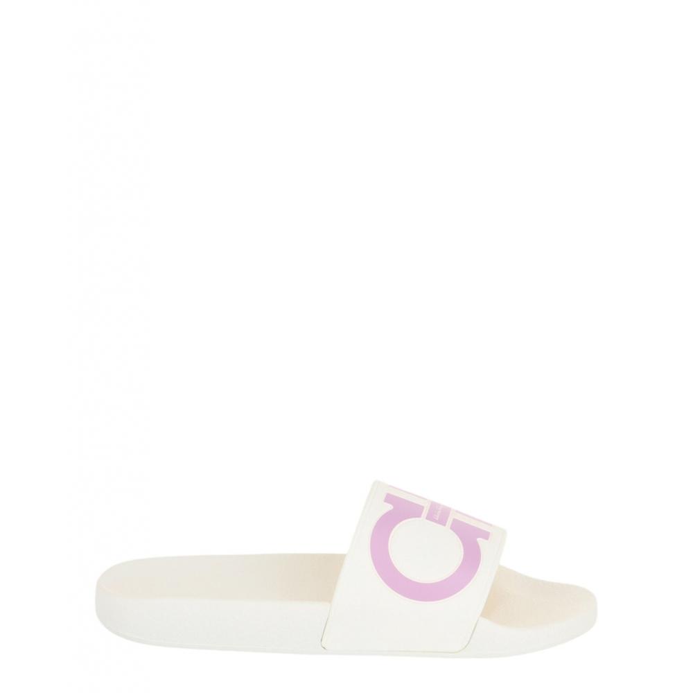Salvatore Ferragamo Groovy Dual Gancini Slides White