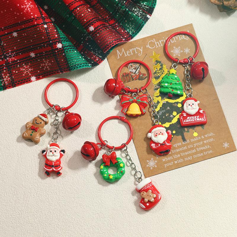 Christmas Gift Keychain Cartoon Santa Claus Gingerbread Man Pendant Key Ring Backpack Hanging Decoration Xmas New Year Gift