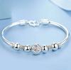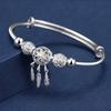 Adjustable Size 925 Silver Bangle Cuff Dreamcatcher Tassel Feather Round Bead Charm Bracelet Jewelry For Women Wedding
