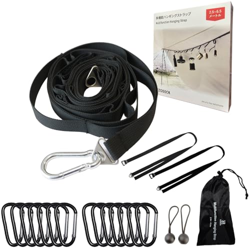 ZODECK Camping Tent Rope with Carabiner, 2.5-6.5m, Hanging Chain, Clothesline, Perfect for Outdoor Activities! Convenient Camping Gear and Tarp Rope (