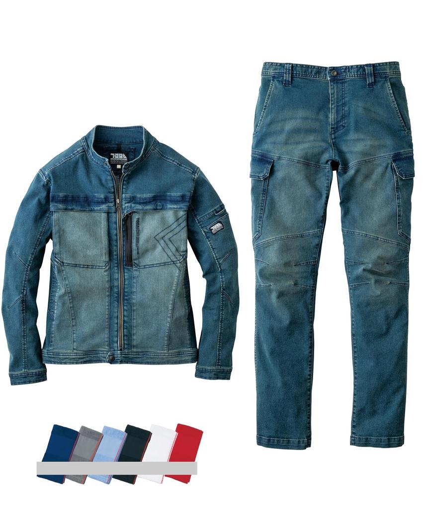 Toraichi Denim Workwear Set Work Jacket Cargo Includes a Towel Name (8890-124 & 8890-219 Pants) (with Logo) (3L, 04.Con)