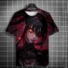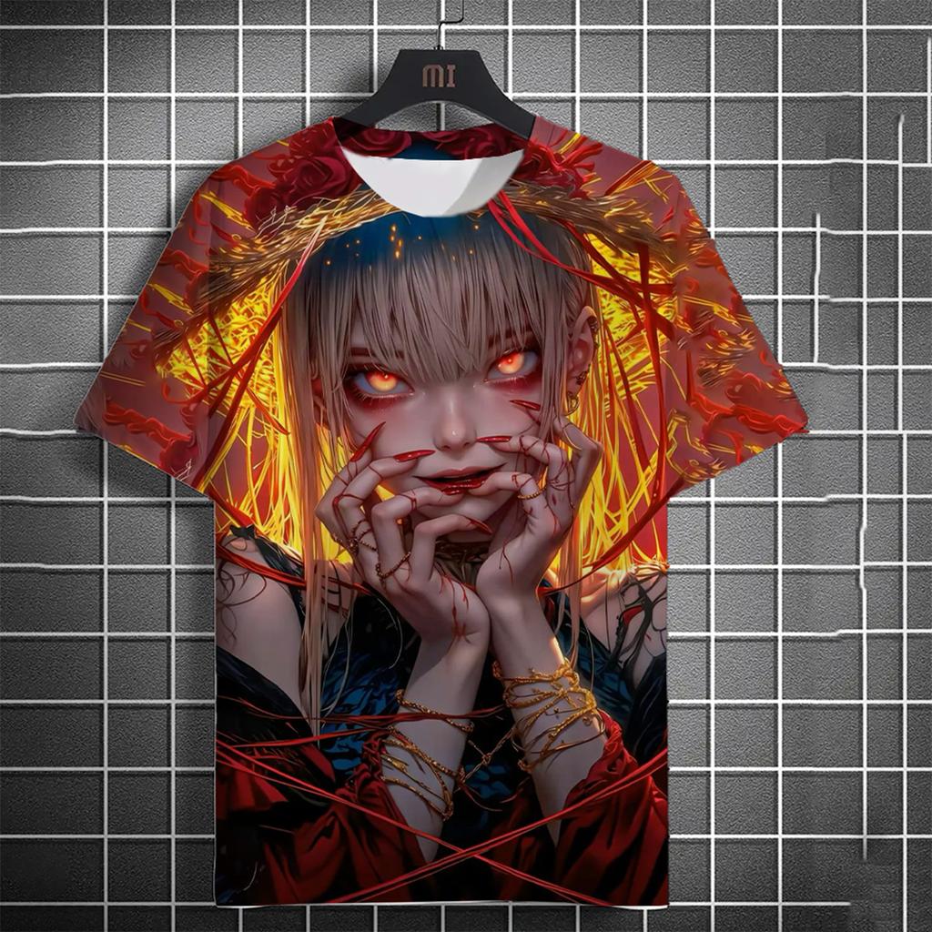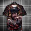 Men's 3D Beautiful Girl Bloodstained T-shirt 3D Cool Pattern Summer Fashion Round Neck Loose Breathable Short Sleeve Top