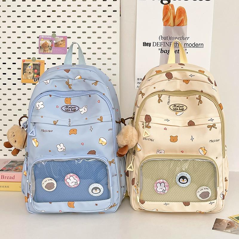 Cute Japanese transparent bag large capacity backpack female student schoolbag junior high school high school student high value backpack