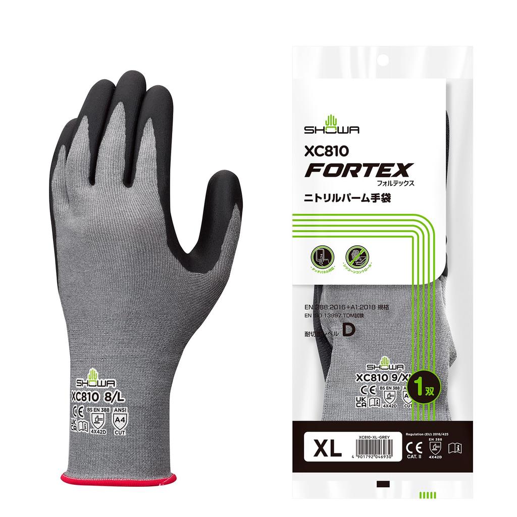 Showa Gloves XC810 Fortex Nitrile Palm Cut Resistant Level Touchscreen XL 1 18 Bag Smartphone Compatible Gloves, D, Compatible, Size, Gray, Pair,