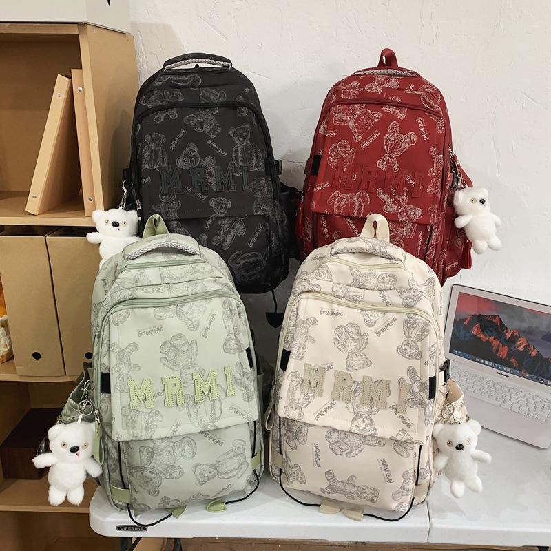 The new bear graffiti backpack has a large capacity of foreign style tide and a couple of middle and high school students have a class backpack tide.