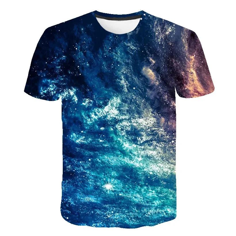 Summer Cosmic Galaxy Men's Space 3d Printing T-shirt Short-sleeved Printed Harajuku Casual Tops O-neck Breathable Thin Section