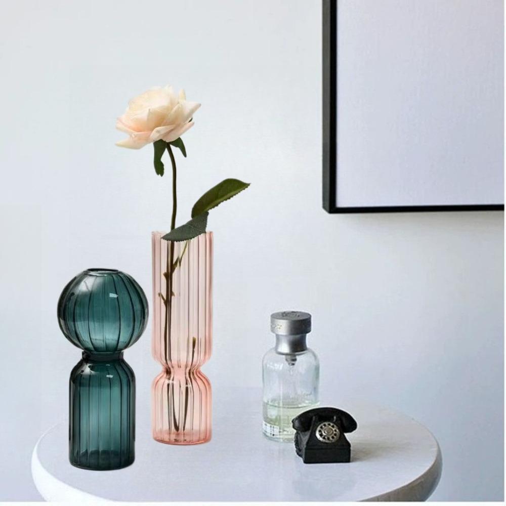 Nordic Creative Striped Colorful Vase Fashion Retro Glass Vase Decoration Ornament Hydroponic Vase for Home Office Decoration