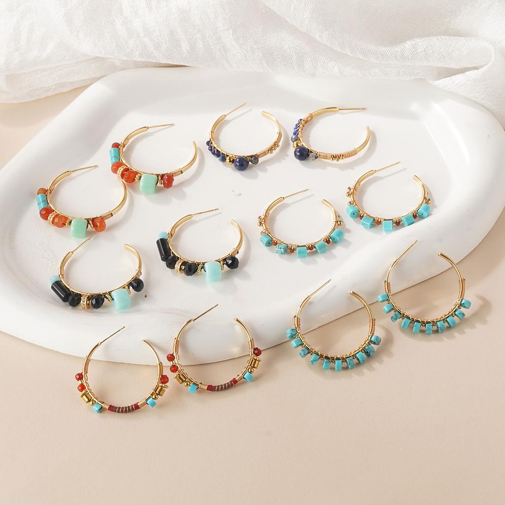 Retro new Chinese natural stone beaded earrings collection handmade design national style oil painting temperament earrings