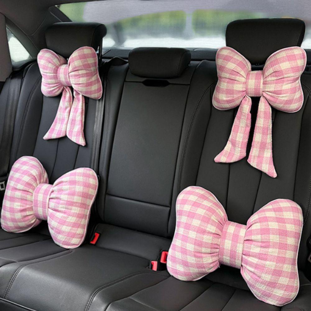 Grid Pattern Bowknot Pillows Plaid Interior Car Seat Cushion Bow Shape Pillow Adults Use
