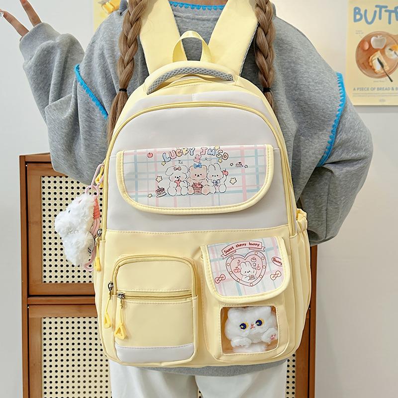 Cute cartoon print contrasting colors large capacity junior high school high school backpack exquisite burden reduction student schoolbag female