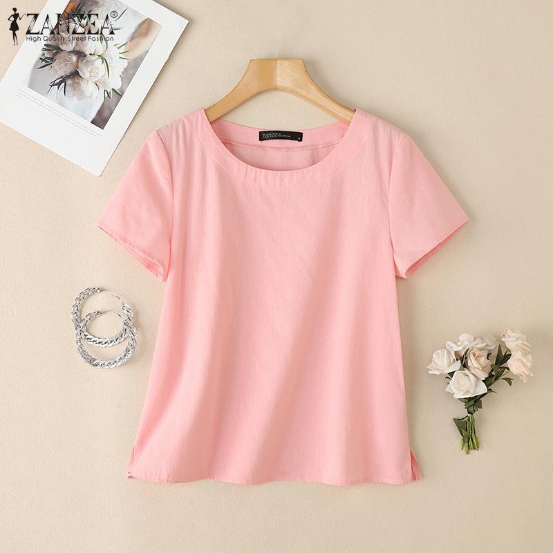 ZANZEA Women Casual Round Neck Summer Cotton Short Sleeve T-Shirts