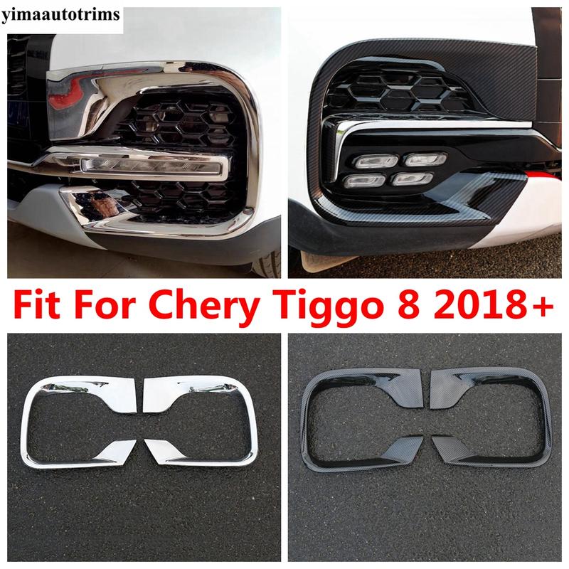 Car Front Fog Light Lamp Frame Decoration Cover Kit Trim ABS Chrome Accessories Exterior Fit For Chery Tiggo 8 2018