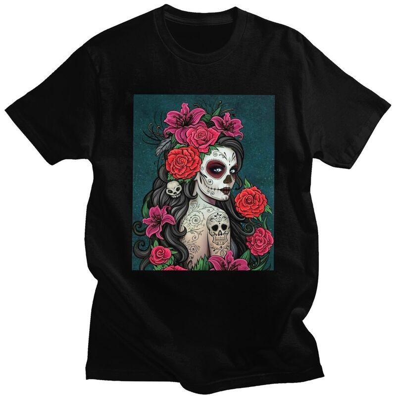 Custom Mexican Catrina Sugar Skull Lady Tshirts for Men Short Sleeve Casual T Shirt Tshirt Pure Cotton Tee Gift