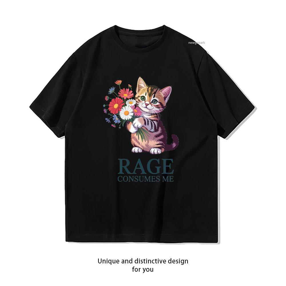 Rage Consumes me Funny Cat TShirt woman man Casual cotton graphic t shirts Creative streetwear tops tee Shortsleev