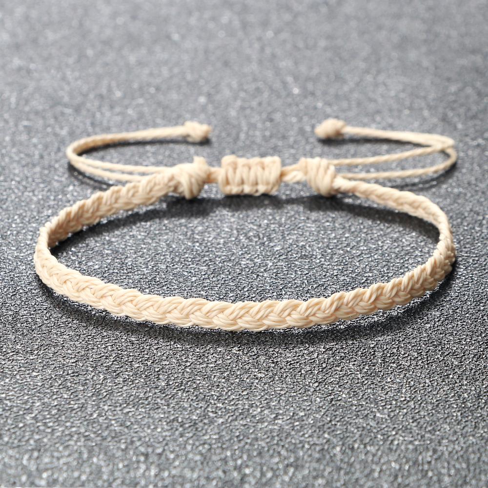 Κλασικές Χειροποίητες Πλεγμένες Βραχιόλια για Γυναίκες Άνδρες Μονόχρωμο Κερωμένο Νήμα Πλεξούδα Βραχιόλι Καρπού Βραχιόλι με Γούρι Ρυθμιζόμενο Κοσμήματα Δώρα