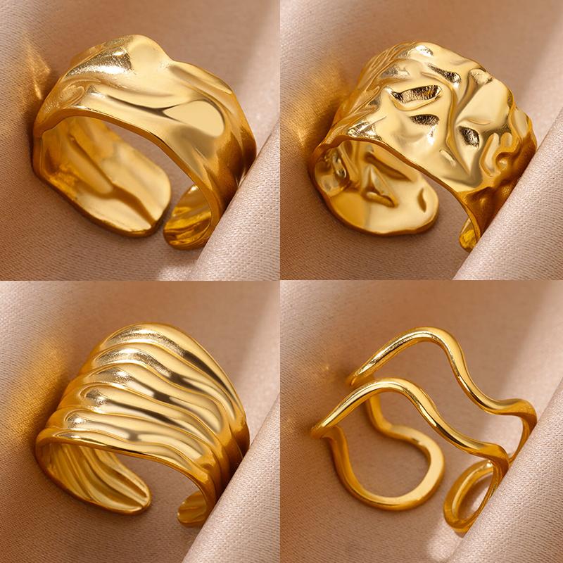 Irregular Geometric Chunky Opening Rings for Women Stainless Steel Gold Color Ring Aesthetic Wedding Waterproof Jewelry Gift