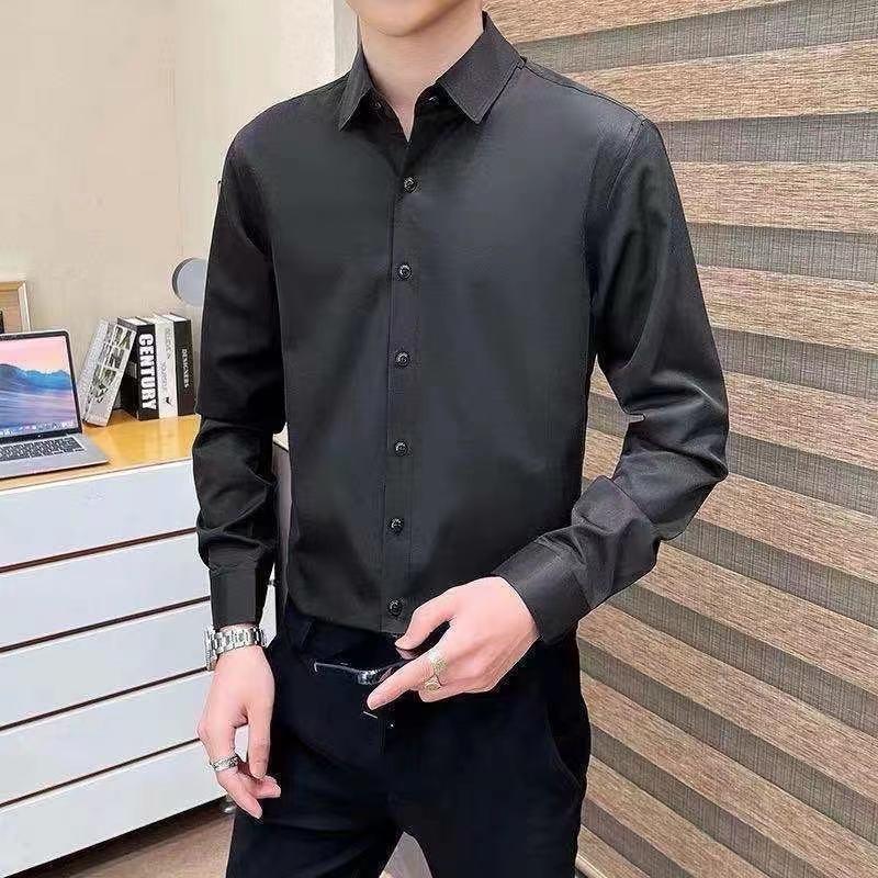 New Men's Micro-elastic Long-sleeved Korean Style Slim Fit Trendy Handsome Casual Shirts