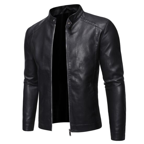 Το μονόχρωμο ανδρικό μπουφάν μοτοσικλέτας μπορεί να συνδυαστεί με στενά τζιν ή παντελόνι από δερματίνη για να ολοκληρώσει ένα μοντέρνο και στιλάτο καθημερινό look.