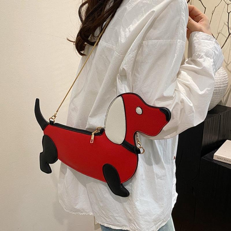 1pcs Creative Fashion Cartoon Dachshund Shoulder Bag Outdoor Travel Casual Crossbody Bag Cute Animal-shaped Handbag