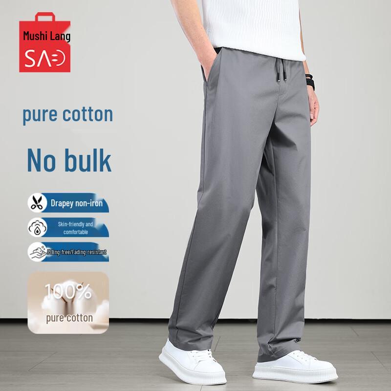 MUSHILANG Men's 100% Cotton Loose Straight Casual Drawstring Pants