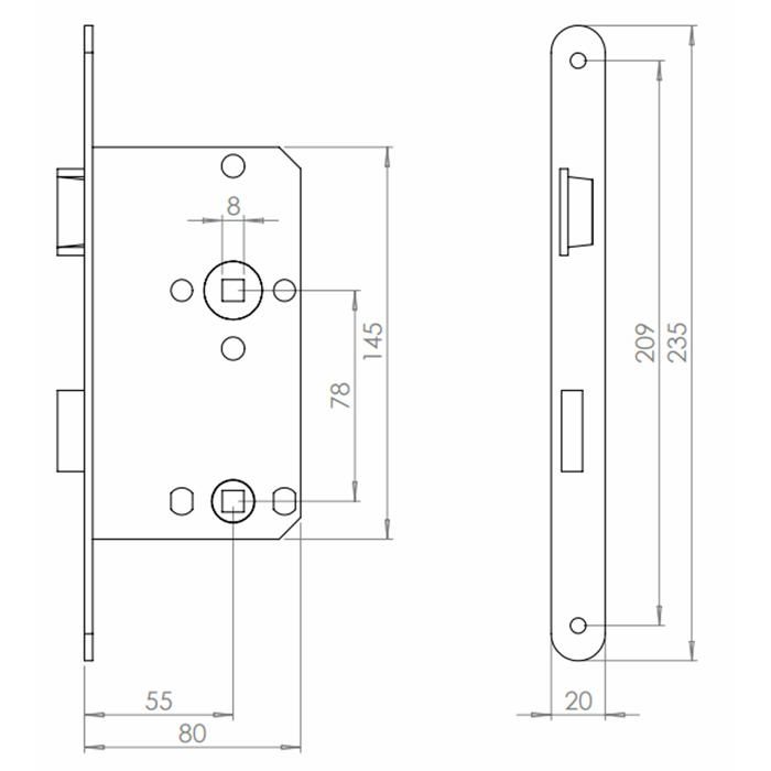 Serrure - barillet - cylindre - verrous Abus - 61771 - Serrure encastrée pour portes de WC ES WC R G 55 78 20-, dorée