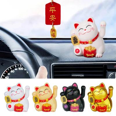 Solar Powered Fortune Cat Figurine Mini Car Ornament Lucky Beckoning Cat Decoration Holiday Gift