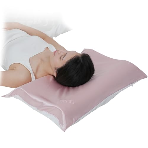 SILQA Large, Loose-Fitting Silk Pillowcase, "Fresh Silk Reduces Friction by 46%" and "Moisturizes 17 Times More," Pink Gold (66 x 47 cm)