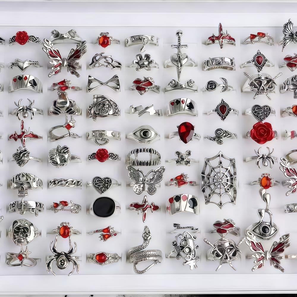 10/15/20/30/50 Τεμάχια Vintage Punk Αράχνη Κρανίο Φίδι Δαχτυλίδια Σετ Για Γυναίκες Μίξη Στυλ Γοτθικό Σκοτεινό Στυλ Δαχτυλιδάκια Δώρα Πάρτι