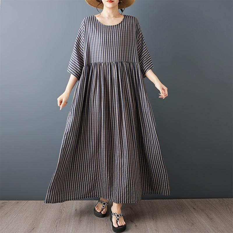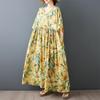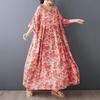 Κοντό μανίκι Plus size Βαμβακερό vintage φλοράλ νέο σε φορέματα για γυναίκες casual φαρδύ μακρύ καλοκαιρινό φόρεμα