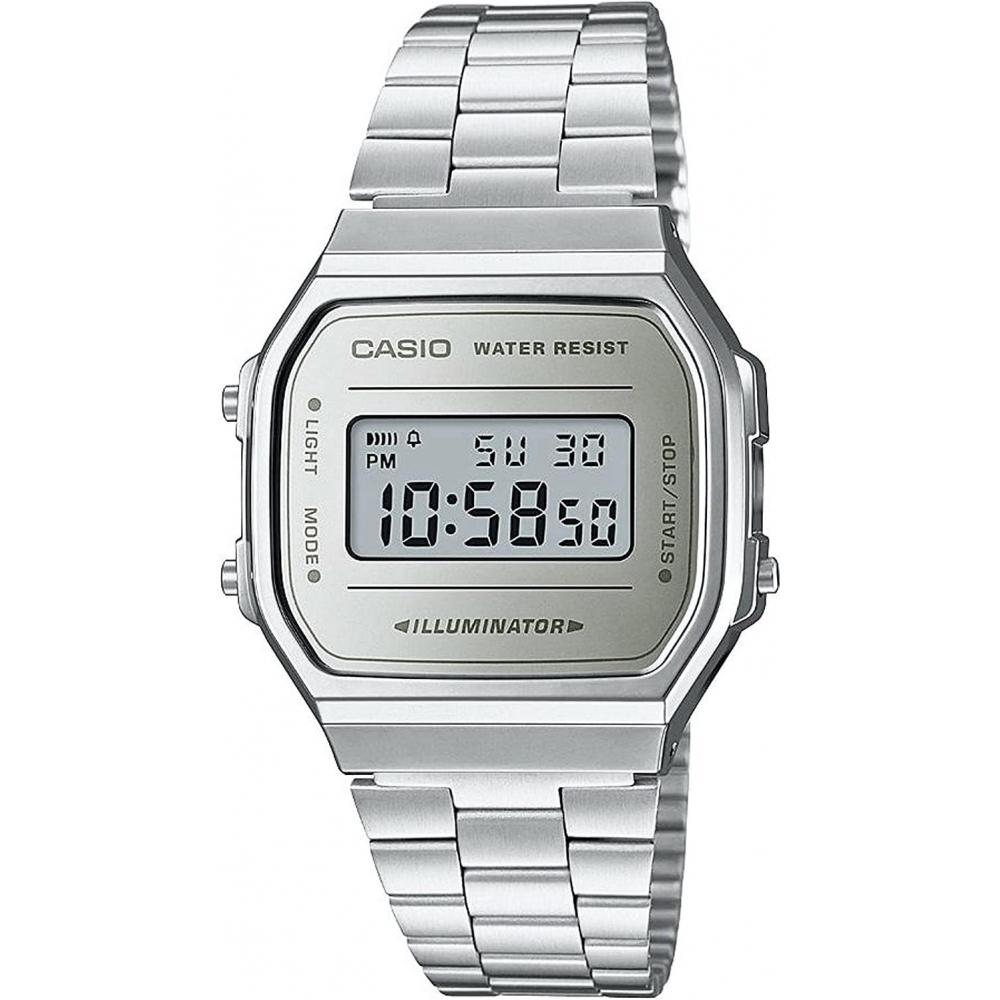 The CASIO Digital Vintage Series A168WEM-7 watch features a classic design combined with a modern silver mirror color. This product is equipped with features such as a stopwatch, EL backlight, and auto-calendar, as well as supporting 12/24-hour display conversion and alarm functions. The watch case is made of synthetic resin, with a stainless steel band and protected by mineral glass, offering water resistance suitable for everyday use.