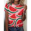 Summer Cool Watermelon Print Women's Short-sleeved Top Beach Vacation Casual Women's Fashionable T-shirt Urban Street Daily Top
