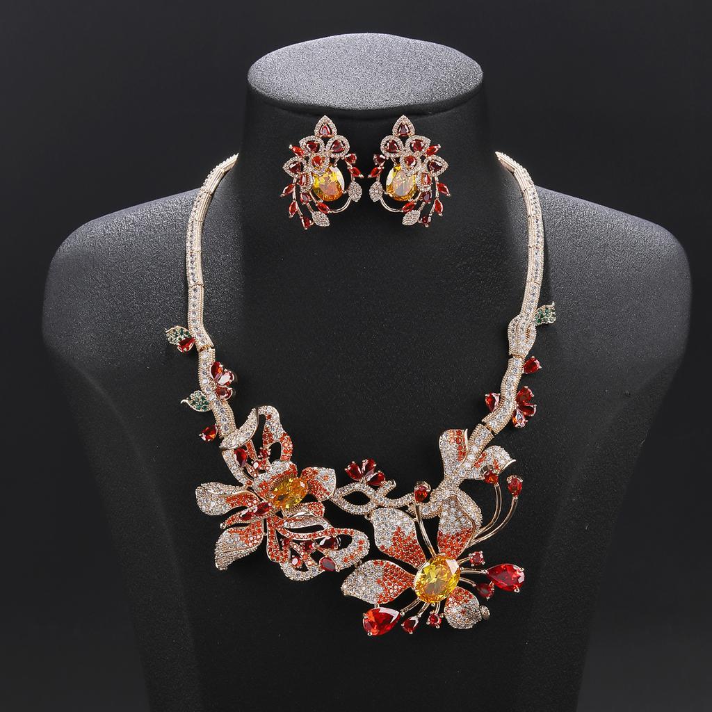 Beautiful Luxury 2 Pcs Cubic Zircon Flower Necklace Earrings Set Women Wedding Party Jewelry Set CN11573