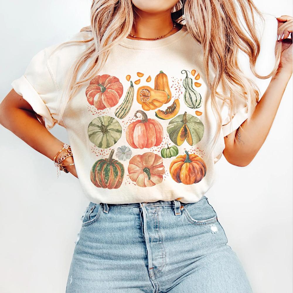 Garden Vegetable Short Sleeve Shirt Vintage Halloween Botanical Fruit Pumpkin Comfort Unisex Tshirt 100 Cotton Unisex Streetwear