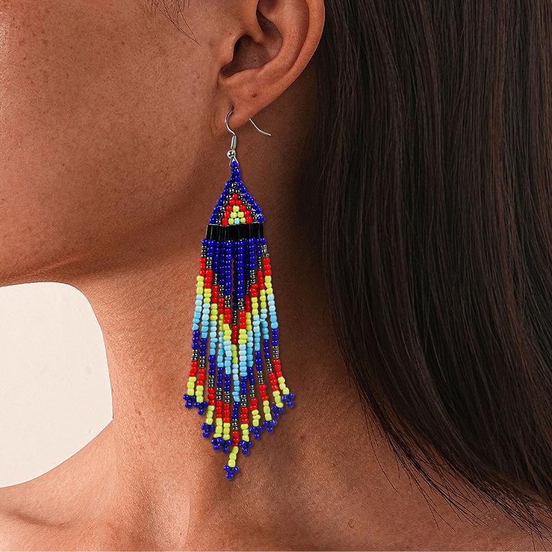 1 Pair of Bohemian Beaded Colorful Geometric Long Earrings as Earring Accessories