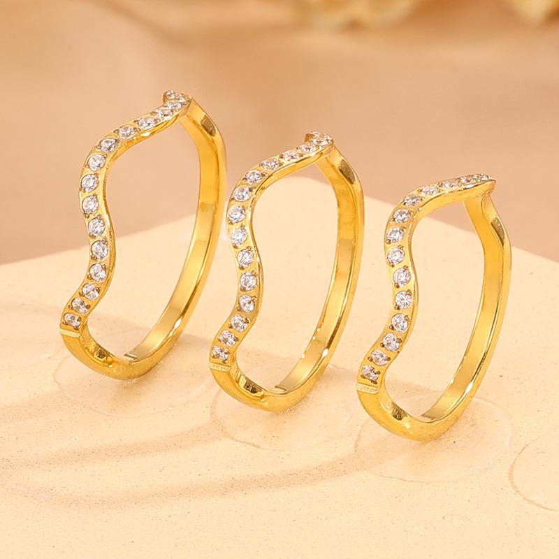 European & American Luxury Titanium Wave Ring with Diamond Inlays - High-End Couple Design