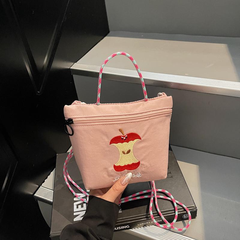 Women's Apple Embroidery Casual Shoulder Cloth Bag 2026 New Style for Going Out Japanese Style Fashi Trendy Crossbody Cloth Ba