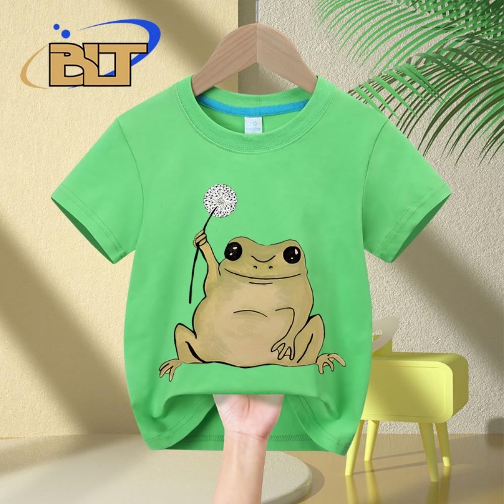 Dandelion Frog printed kids T-shirt summer children's pure cotton short-sleeved casual tops boys and girls gifts