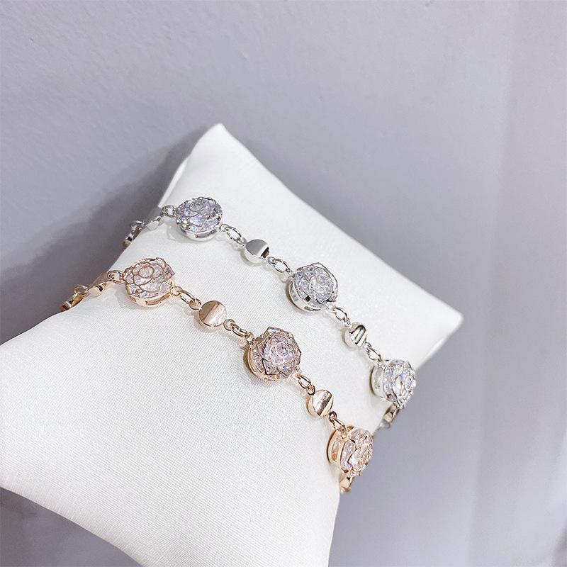 Korean Rose Gold Plated Rhinestone Fashion Bracelet - Elegant Hand Jewelry for Women & Couples