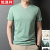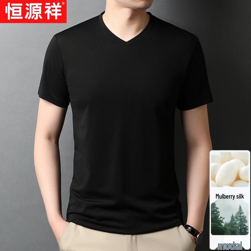 Hengyuanxiang Men's Summer V-Neck Silk Blend T-Shirt
