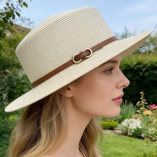 This panama hat features a light luxury faux leather buckle decoration with a contrast color imitation leather belt and metal buckle, adding exquisite detail perfect for daily wear or vacations.