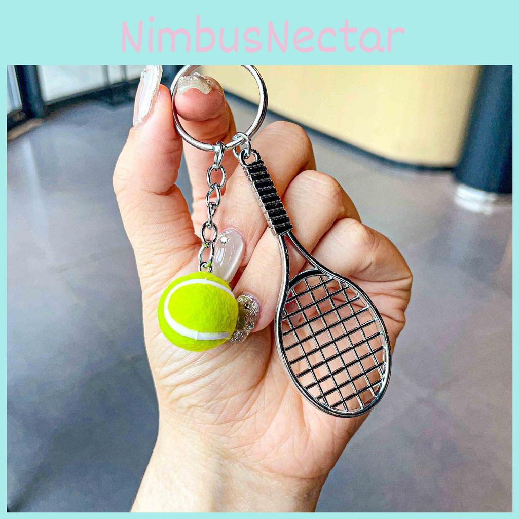 Charming Metal Tennis Racket Keychain With Colorful Ball Key Accessory