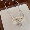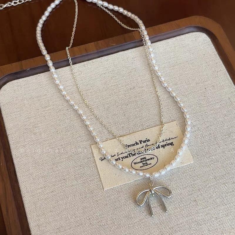 Broken silver metal bow love pearl necklace women's niche design personalized versatile high-grade neck chain collarbone chain