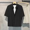 Καλοκαιρινό ανδρικό κοντομάνικο λευκό πουκάμισο Αντιρυτιδικό μονόχρωμο μονόχρωμο μπλουζάκι με χαλαρά κουμπιά πουκάμισο με τσέπες