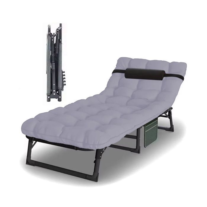 Chaise longue pliante - Divit KL3 - Matelas rembourré beige - Dossier 4 positions - Pliable