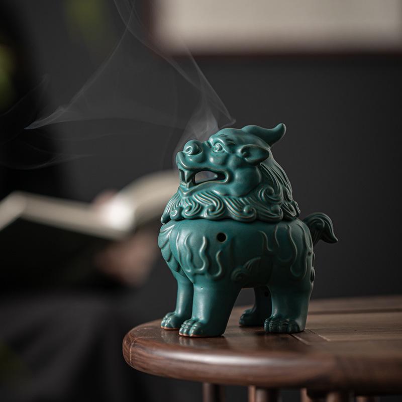Ceramic Suanni Beast Coil Incense Burner with Lid - Antique Style Ornament for Home