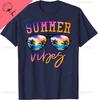 Summer Vibes Sunglasses with Palm Tree Funny Beach Life TShirt Cotton Unisex Summer Streetwear Tops Camiseta Hombre