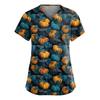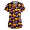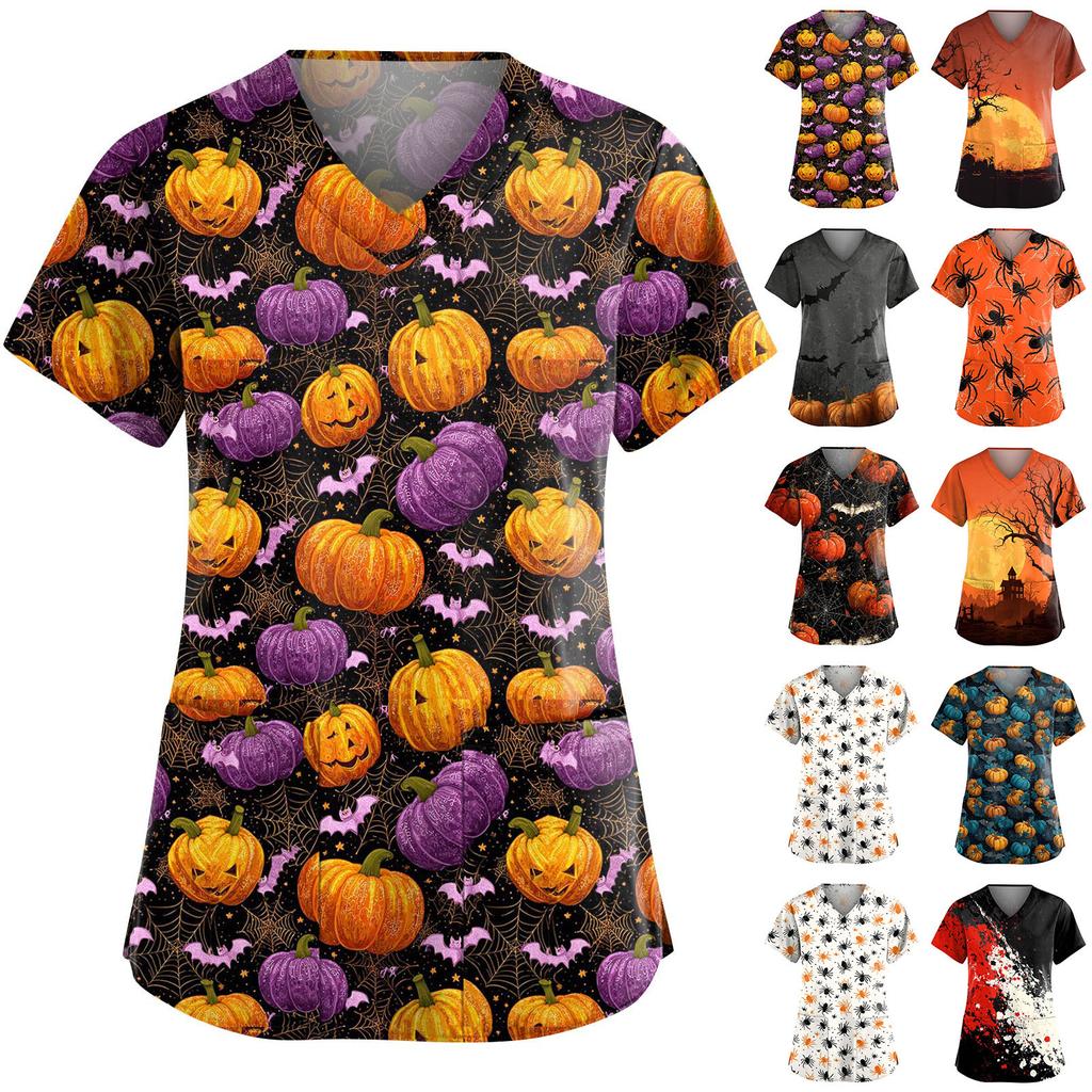 Women's Fashion V-Neck Short Sleeve Overalls With Pockets Halloween Printed Tops Apparel